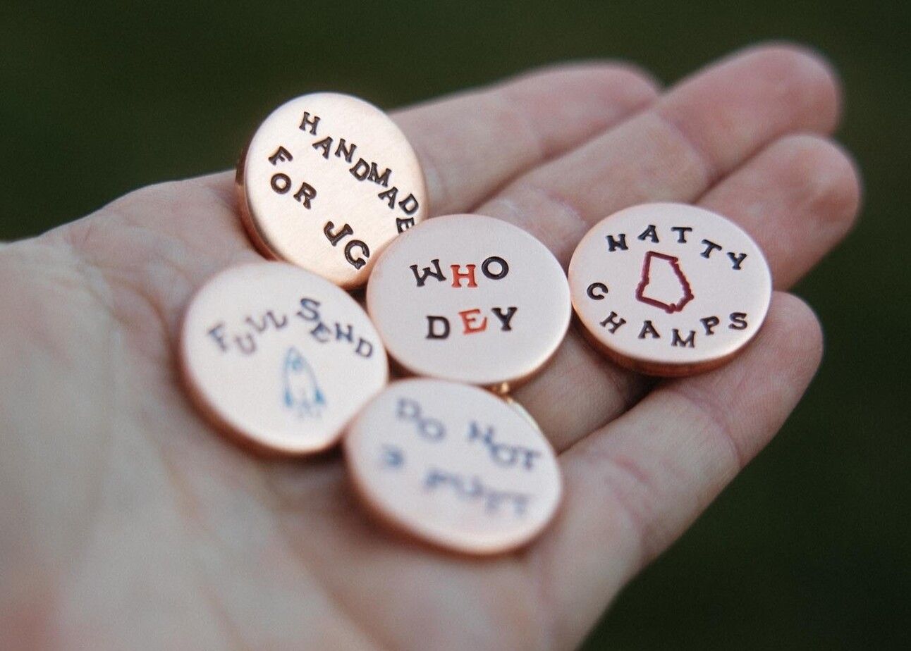 While JGD has branched out over time into other types of accessories and apparel, the core offering remains their array of custom ball markers - all stamped, finished, and painted by hand. “Each individual stamp gets hammered into the ball marker, so each one is unique and different even if they have the same design," he said. “It’s a labor of love.”