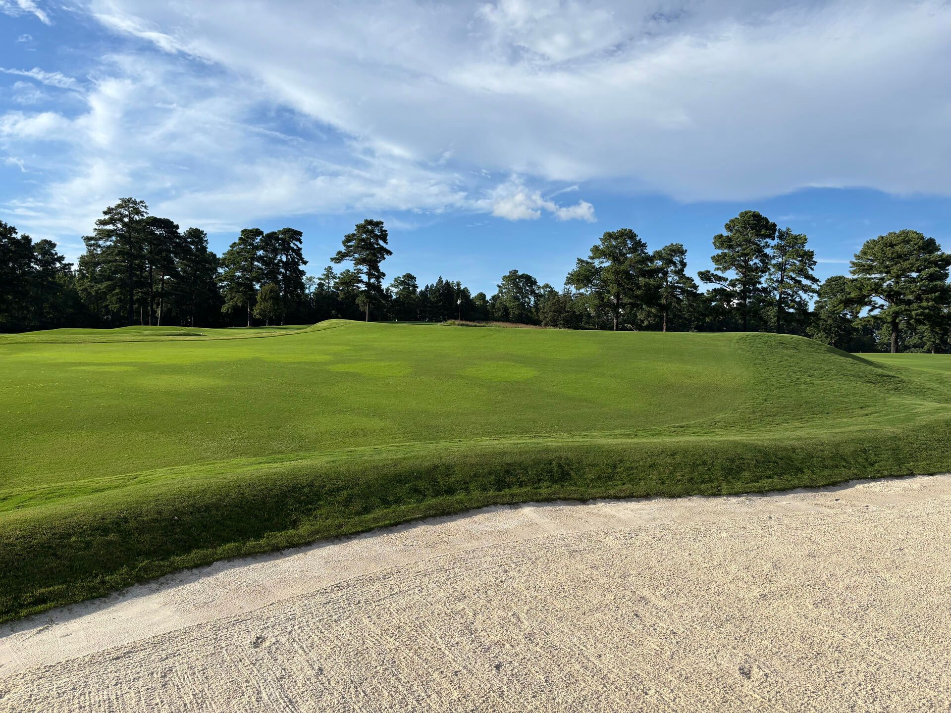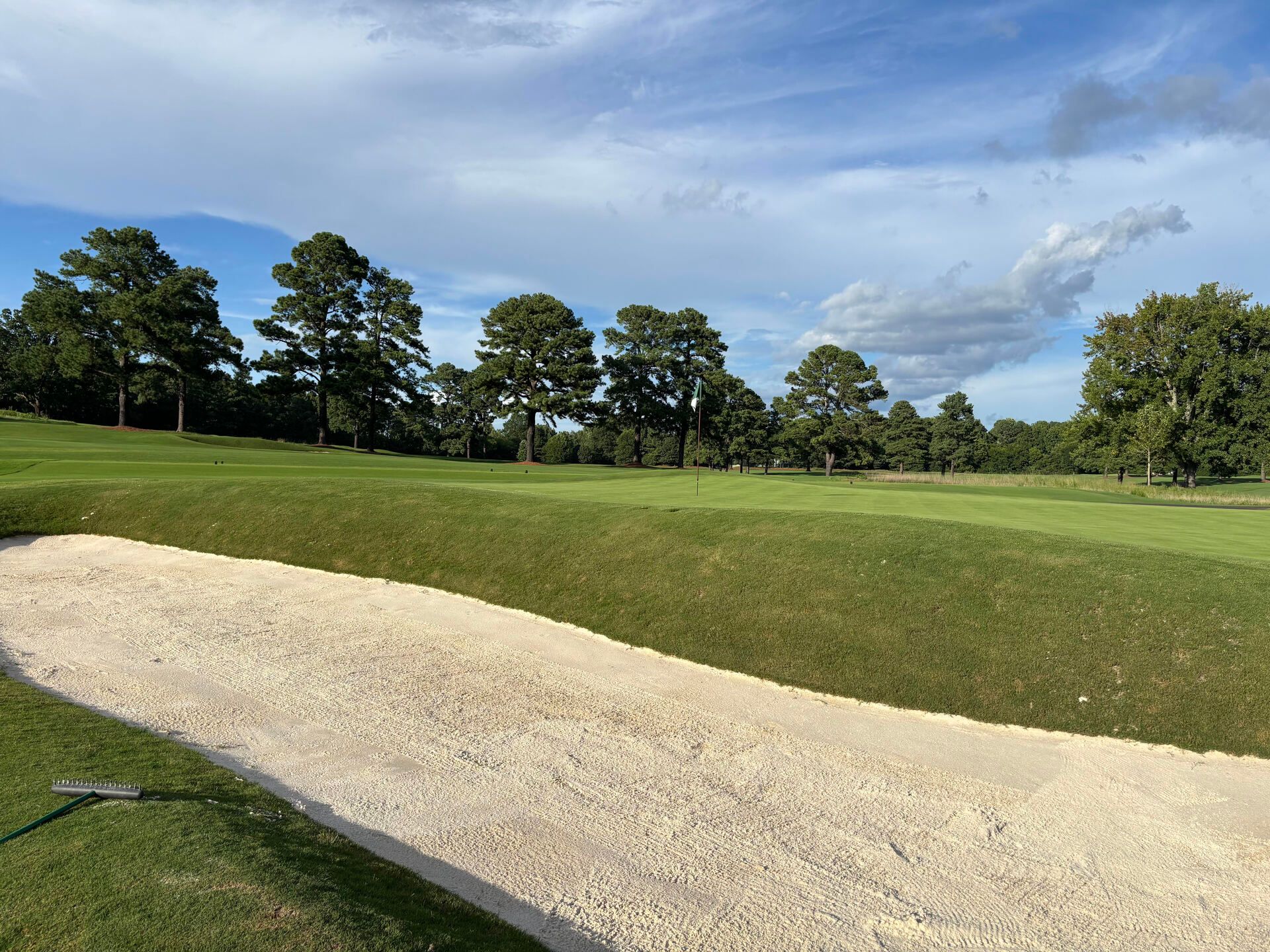 Left of the greenside bunker. The angle to today’s pin is… uninviting.